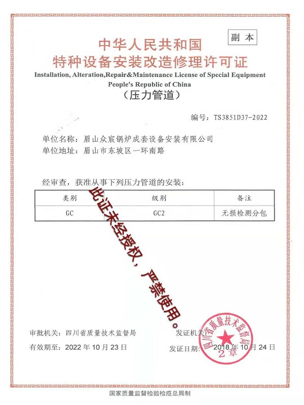 眉山眾宸鍋爐成套設(shè)備安裝有限公司成立于2010年,座落于四川省、眉山市,這里風(fēng)景秀麗、交通方便、信息暢通,是一代文豪蘇東坡的故鄉(xiāng)。 公司設(shè)有與鍋爐安裝維修、壓力管道安裝有關(guān)的行政職能部門(mén)4個(gè)(公司辦公室、經(jīng)營(yíng)部、工程部、質(zhì)量技術(shù)部) .現(xiàn)有員工32名,其中工程技術(shù)人員7名,持證焊工11名,無(wú)損檢測(cè)人員1名、鍋爐調(diào)試人員2名,公司人員的配備涵蓋了焊接工程、機(jī)械工程等專(zhuān)業(yè)。公司從管理層到作業(yè)人員,都是多年從事鍋爐安裝施工的現(xiàn)場(chǎng)項(xiàng)目經(jīng)理、項(xiàng)目質(zhì)量與專(zhuān)業(yè)技術(shù)人員及持證焊工、起重工等
